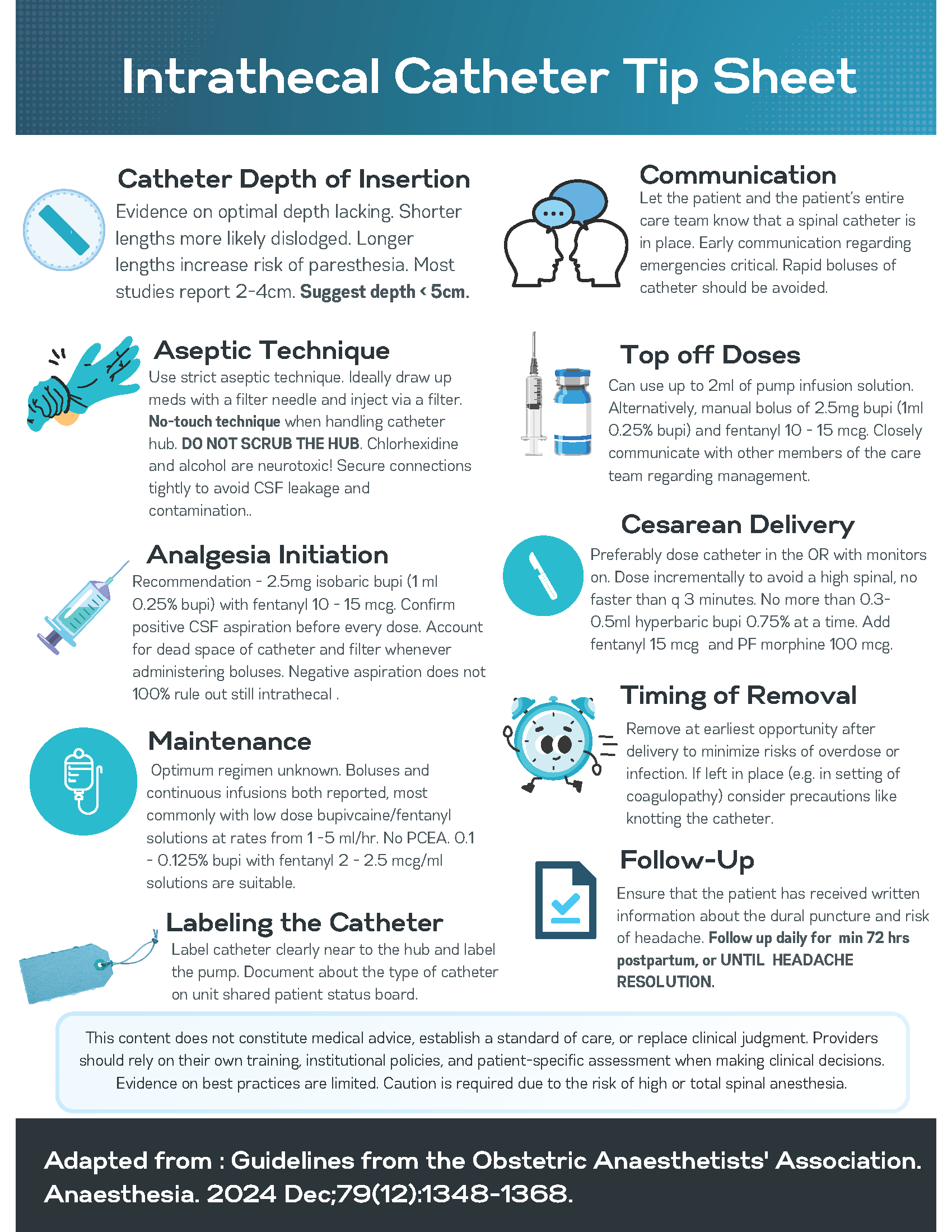 InfographicsThese resources are downloadable for your use and are meant to deliver information in a graphical manner. Click on the image or link to download in .pdf format. Intrathecal Catheter Tip Sheet Peripartum Pain Management Toolkit for Cesarean Delivery > Download the Infographic (PDF)